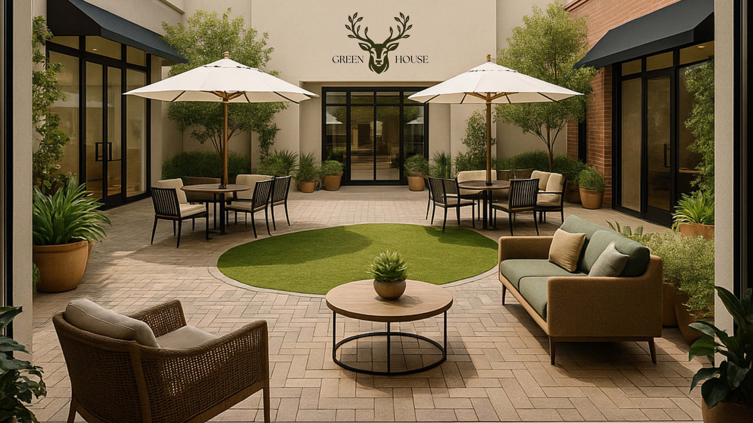 The Green House stag pays homage to Green(e) lineage—royal stewards of historic estates defined by deer parks, gardens, and a devotion to sport and leisure. Today, the crest and blooming antlers stands reimagined as a symbol of strength, balance, and growth for a modern era.